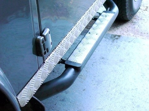 Defender 90 Tubular Side Steps - Black Chequer