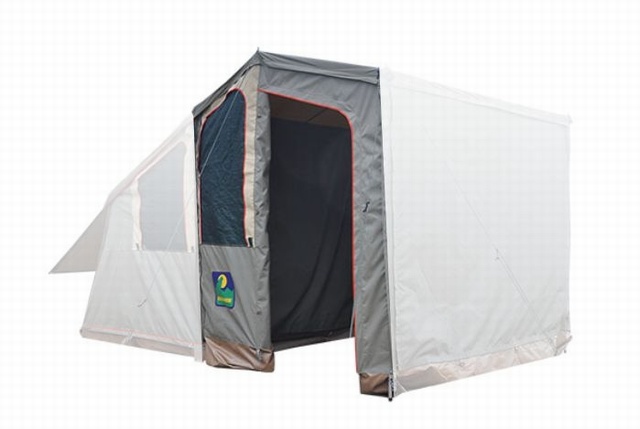 Simply unzip the wall to open out to form a huge veranda awning with insect screen windows.